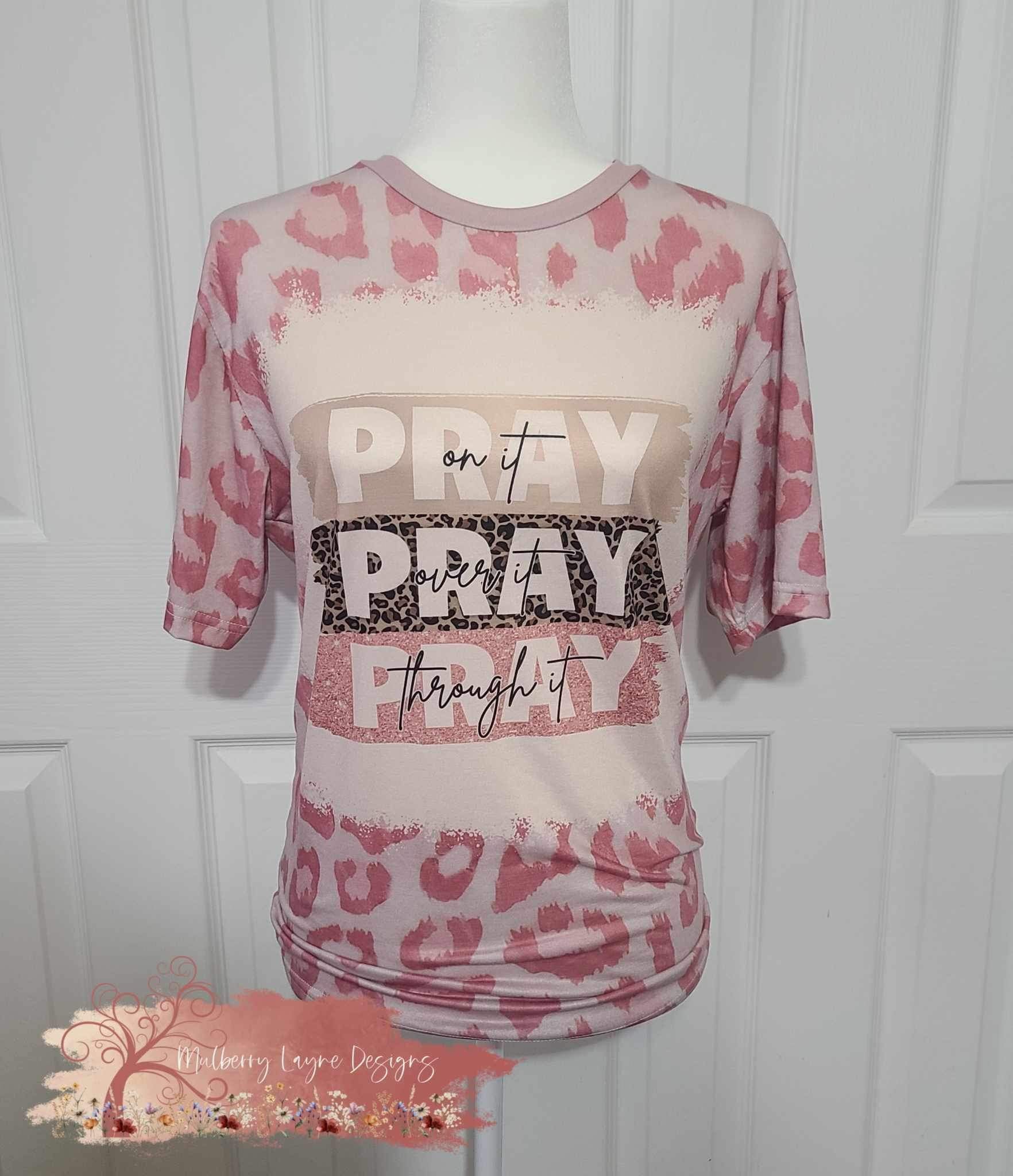 Pray On It Pray Over It Pray Through It Faux Bleached Shirt