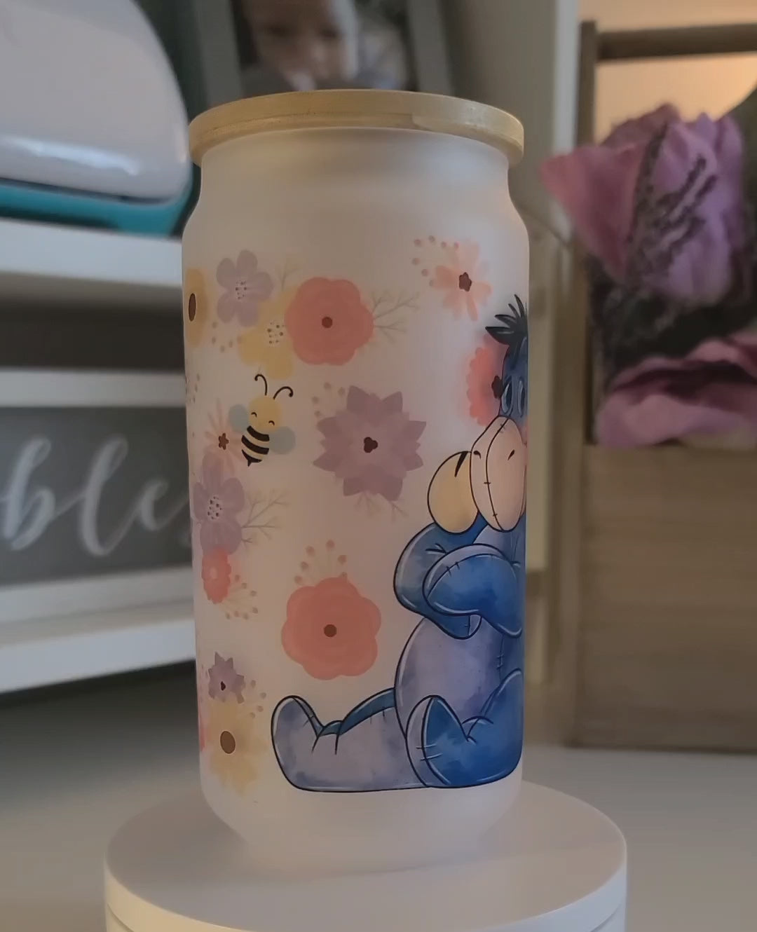 Honey Bear And Friends Frosted Glass Can